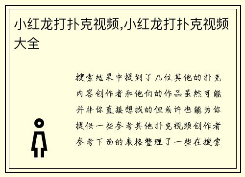 关于“红龙扑克”的骗局揭秘视频及其官网,我查询了现有的网络信息,但暂未找到一个明确可靠的官方网站。目前搜索到的内容大多与各类骗局有关,你需要非常小心地甄别。 在哪里可以找到骗局揭秘视频 如果你想通过视频了解扑克骗局,可以参考以下途径。不过请注意,这些内容多为玩家分享或媒体报道,你需要理性判断。 | 视频平台/来源 | 可搜索的关键词/片名 | | :-- | :-- | | 抖音、Bilibil...